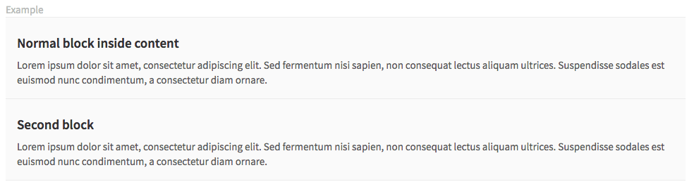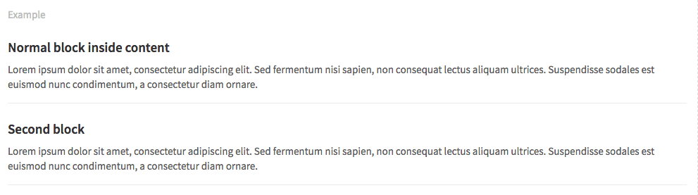 A background color can be added to this blocks. For example, items in the issue list have a green background if they were created recently. Below is an example of a gray content block with side padding using .row-content-block